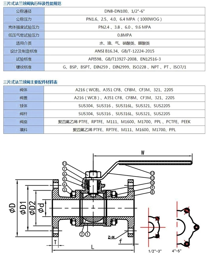 進(jìn)口三片式法蘭球閥設(shè)計標(biāo)準(zhǔn)