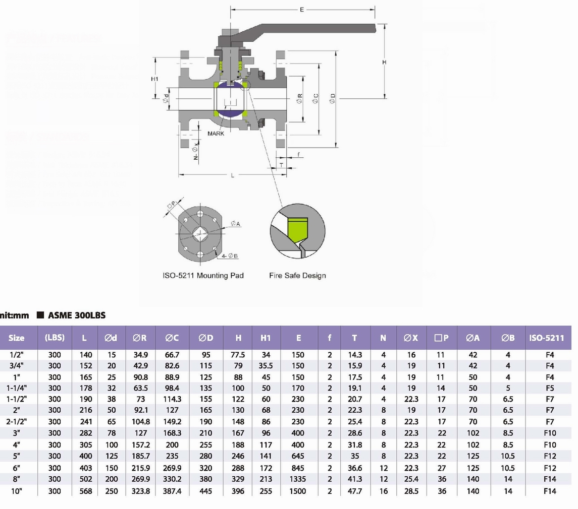 球閥公稱通徑:DN15~250mm 1/2"~10"