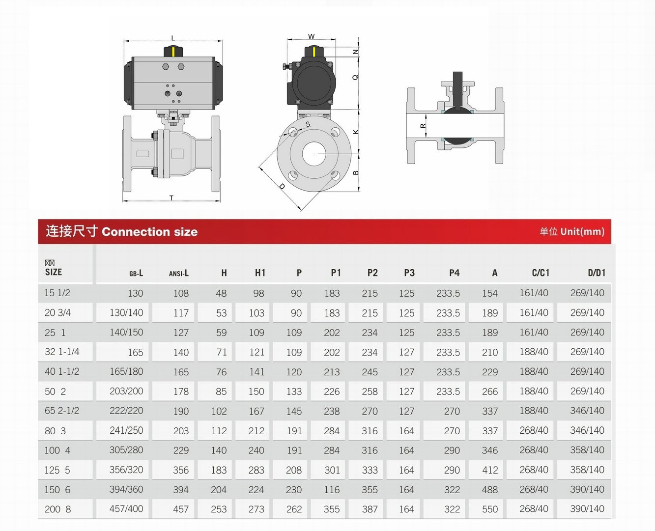 1,根據工況需要氣動法蘭式球閥可分為軟密封(-30~180℃)和硬密封(-40~450℃)兩種密封結構,以便在不同介質、不同溫度及不同壓力的場所中合理使用。