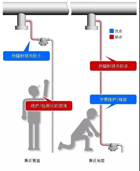 缺點(diǎn):作為蒸汽主管的延伸,向下的垂直管道越長(zhǎng)意味著熱輻射損失越多。(在不影響疏水閥運(yùn)行的前提下,可以通過(guò)安裝保溫來(lái)減少熱輻射損失)